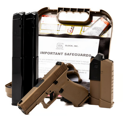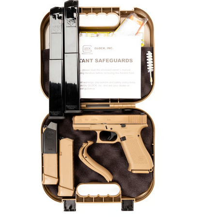 Buy GLOCK G19X – Mag Package. GLOCK’s first ever “Crossover” pistol, the GLOCK 19X, combines the best features of two of its most popular and most trusted field-tested platforms. The full-size GLOCK 17 frame and the compact GLOCK 19 slide have joined forces to produce the ideal pistol for all conditions and all situations. Buy GLOCK G19X – Mag Package. The 19X comes in the coyote color with the first-ever factory colored slide, finished with an improved nPVD slide coating to prevent corrosion. Additional features include the GLOCK Marksman Barrel (GMB), no finger grooves, ambidextrous slide stop levers and lanyard loop. Buy GLOCK G19X – Mag Package.